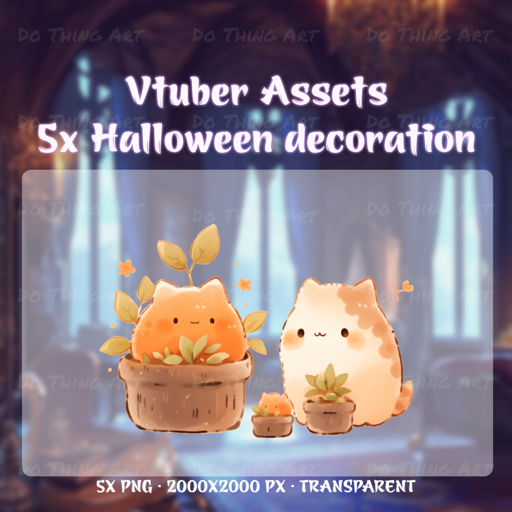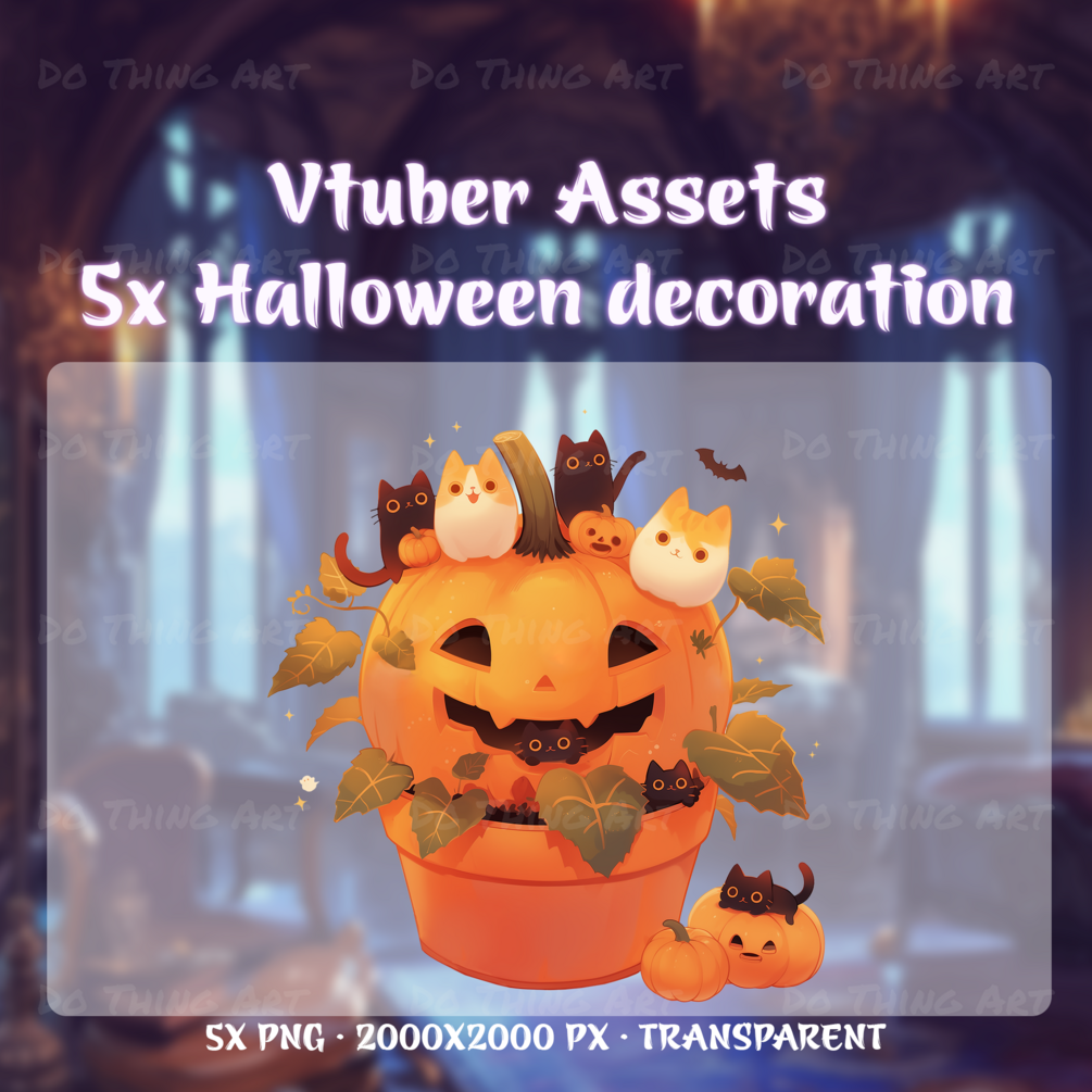 Transform your digital streams into a Halloween wonderland with these adorable Vtuber Assets featuring playful Pumpkin Cat designs. Add an extra touch of Kawaii and Spooky charm to your Twitch or YouTube channels with these festive digital assets perfect for the Trick or Treat season.