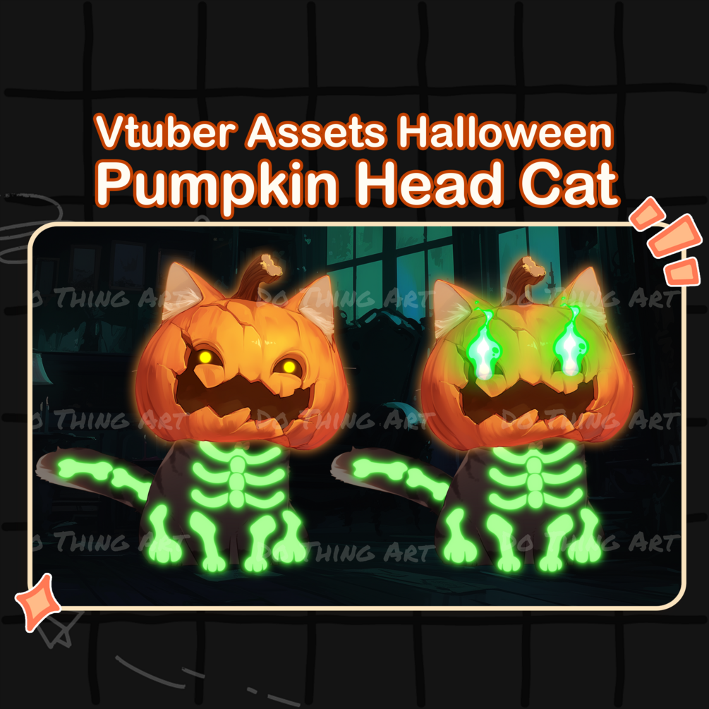 Let me introduce you to an absolute must-have for Vtubers and content creators alike - the Animated Kawaii Halloween Pumpkin Cat Vtuber Asset.